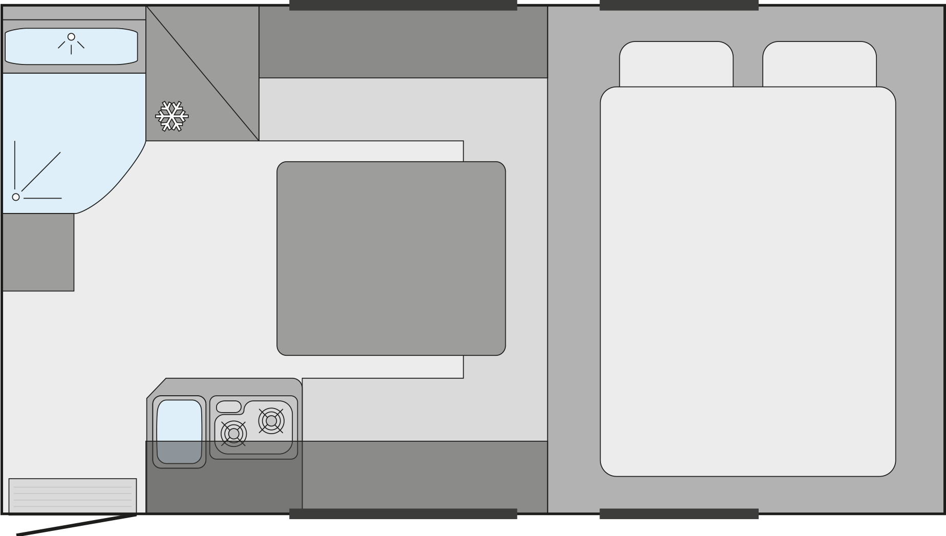 - Stauraum für zwei 5 kg-Gasflaschen, von außen zugänglich